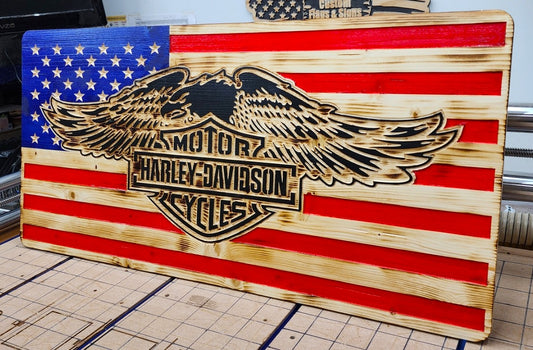 16" X 26" Wooden American Flag - Eagle - Pine Wood - Red White & Blue Flag