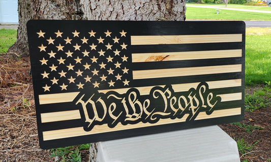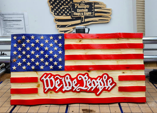 3D "We the People" Wavy US Wooden Flag - 3D Flag - Built to Order